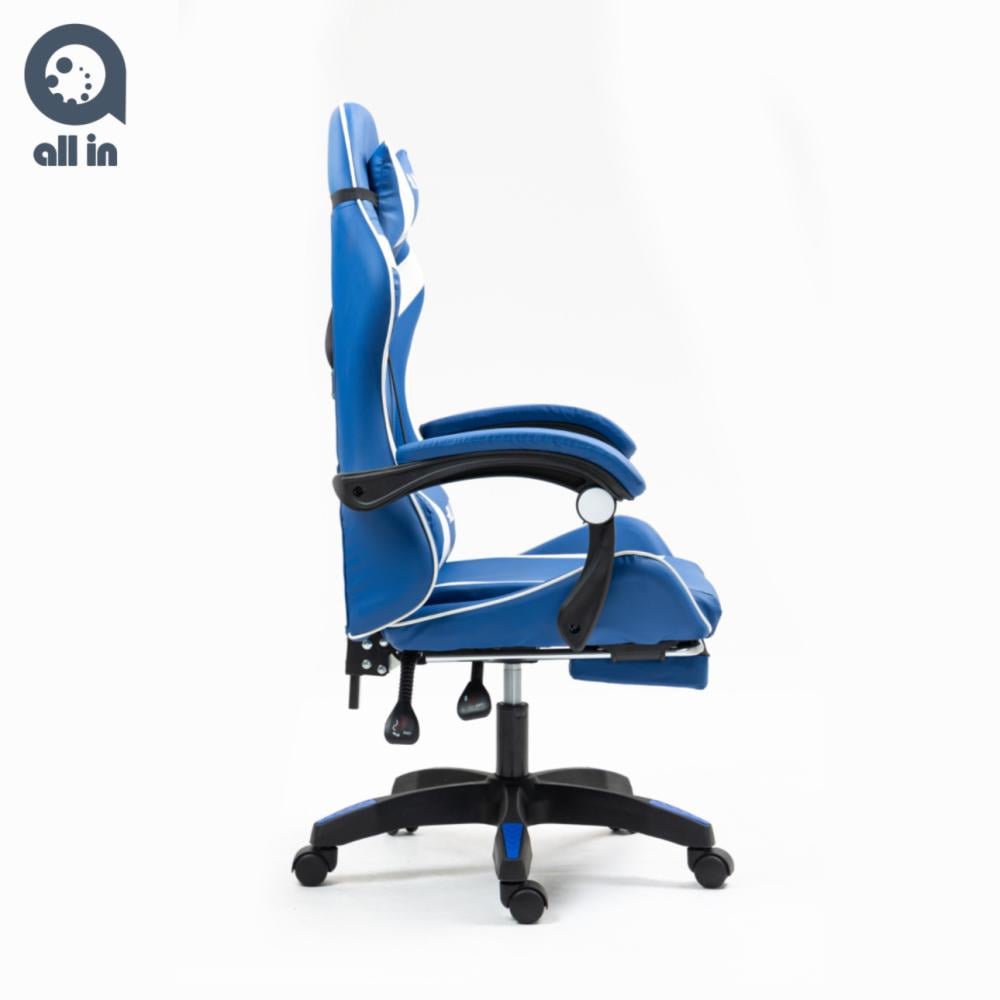 كرسي جيمنج أبيض وأزرق بتصميم نظيف ومميز يضيف لمسة عصرية إلى أي سيت أب. يوفر أوضاع جلوس متعددة، مع خامات عالية الجودة ومتانة تدوم لسنوات. خيار مثالي للجيمرز المحترفين.