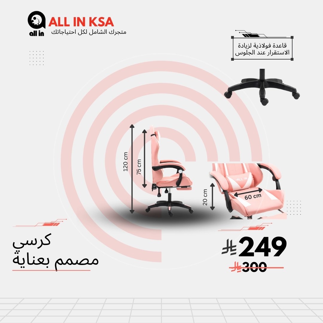 - متعدد الاستخدامات: يمكن أن تجعله كرسي قيمنق لألعاب الفيديو أو كرسي مكتبي.